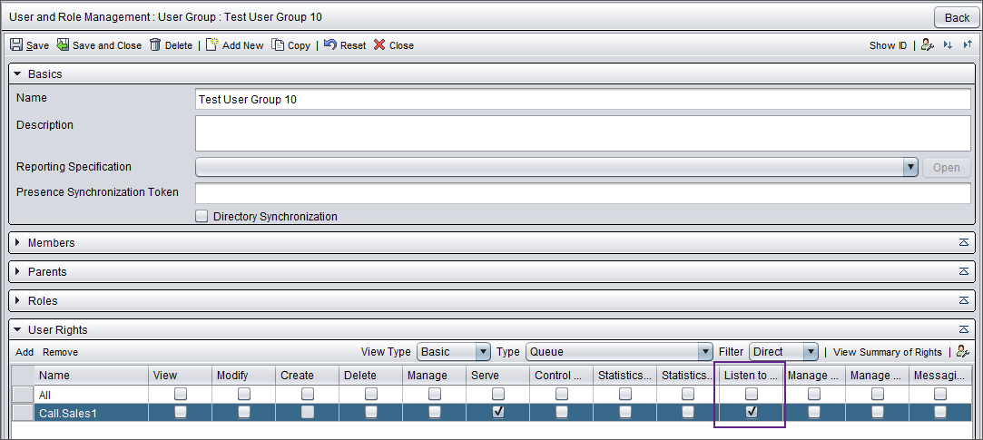 We recommend assigning the listening right to a user group or user role rather than to individual users.