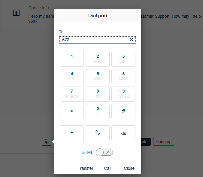 - The Transfer button is enabled when you have an active call, and you have entered another phone number in the field.