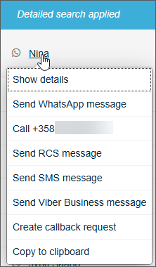 To start an action, for example, to make a phone call, or send a message or email, click a smart link in the conversation row. Note that if the setting Hide name in addresses and last digits of phone numbers in System Configurator is in use, smart links are not available.