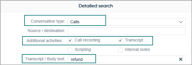 Scripting: To search for conversations where scripting is used, select the checkbox.