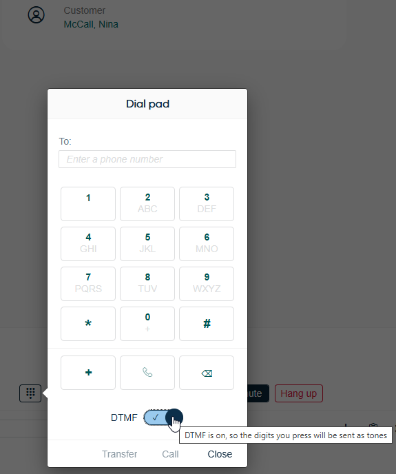 Click the DTMF toggle switch to enable DTMF mode.