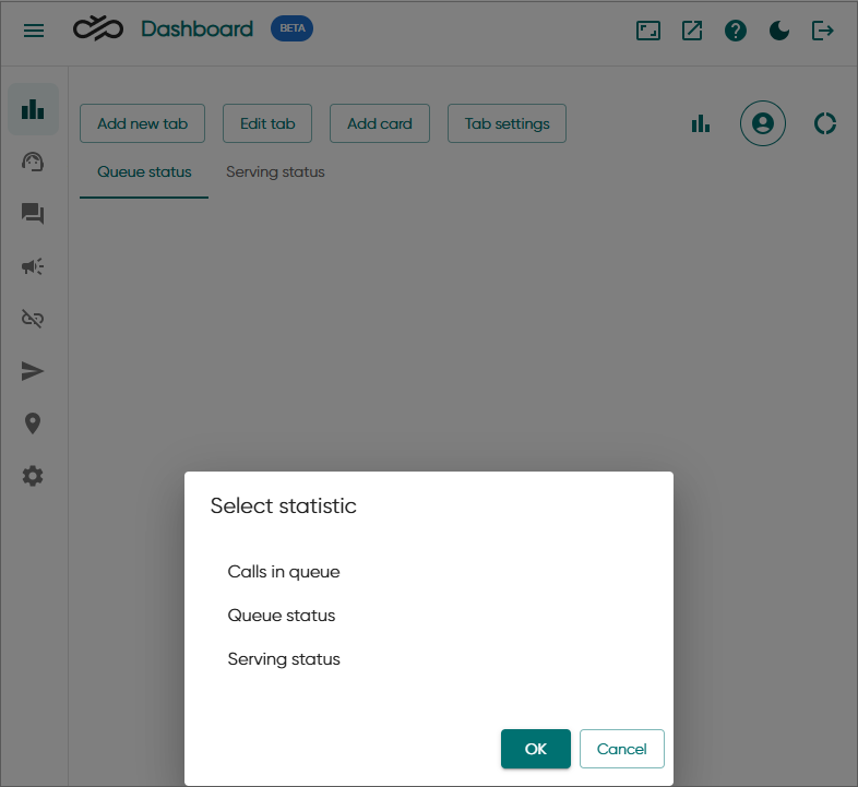 We've also added Queue status and Serving status cards to the Statistics view.