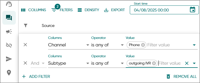 It's possible to filter calls based on a subtype outgoing IVR in the new Dashboard.