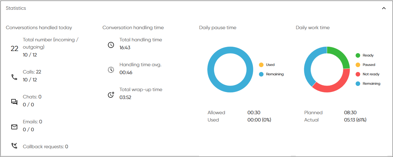 Both Conversation details and Agent details views have been updated with the new look and feel. We’ve also improved how the Statistics section in the Agent details view shows daily pause time and daily work time for easier tracking.