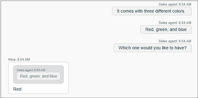 Contact Pro now shows if a customer has included parts of the agent's previous message in their current message when sent from WhatsApp, Instagram, or Facebook Messenger.