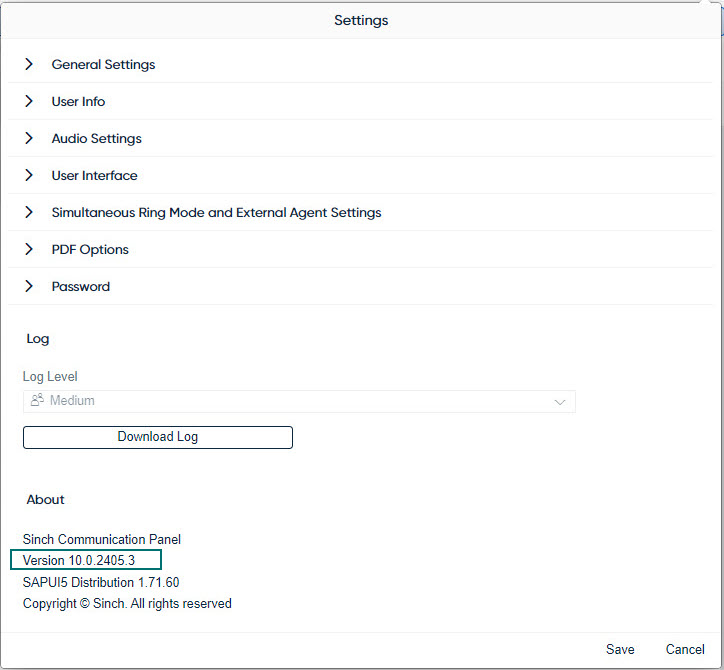 To see which version your tenant has, open Communication Panel and go to . The patch number is the last digit in the Version field.