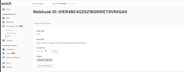Configuring Sinch Conversation API