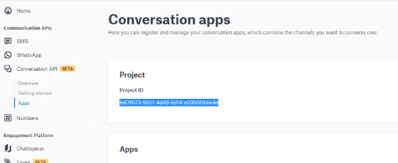 You have created and configured your project and apps API in Sinch Portal (https://dashboard.sinch.com/login). For instructions, see https://developers.sinch.com/docs/conversation.