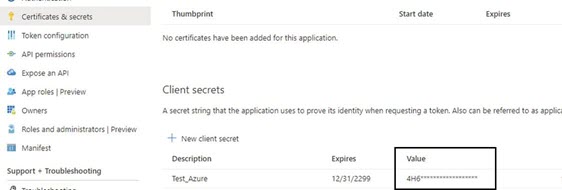 registration should be protected at application registration level with the secret. Enter the mail server secret from the Value column in Microsoft Azure Active Directory.