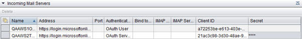 If you want to use OAuth authentication for the incoming email server, configure it in according to the table below: