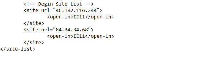 Make Enterprise Mode Site List XML file and configure file location to the policy.