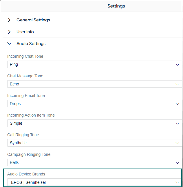 Choose EPOS | Sennheiser as the audio device brand in the Communication Panel settings.