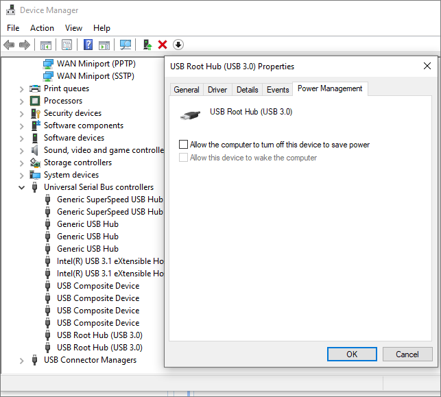 Repeat this for all USB root hubs.