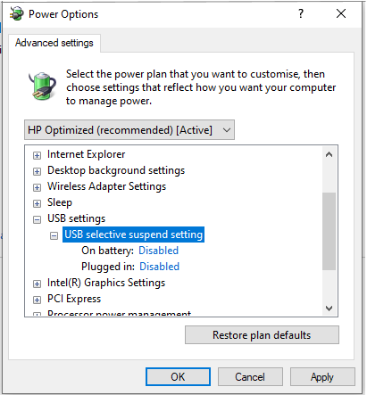 the setting USB Selective suspend