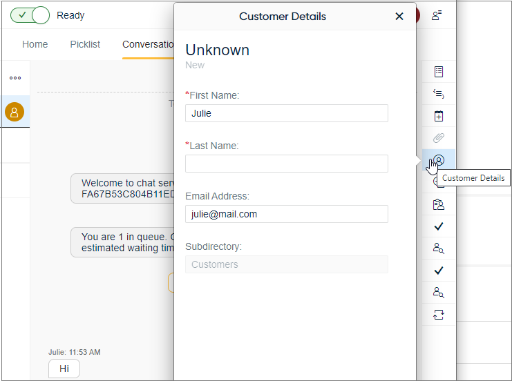 - Customer Details: available with all conversation types