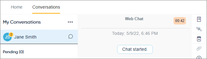 When 75% of the defined handling time limit has passed, the conversation timer changes from grey to orange. An orange exclamation point also appears in the Conversations list: