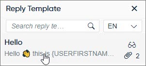 (Reply Template) button in the extension area.A list of templates associated to the queue appears. For new outbound conversations, the list of templates is based on your defined language. If needed, you can search further: