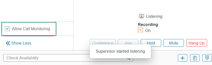 Administrators define whether agents can control call monitoring. If they can, call monitoring can be denied also during an active call.