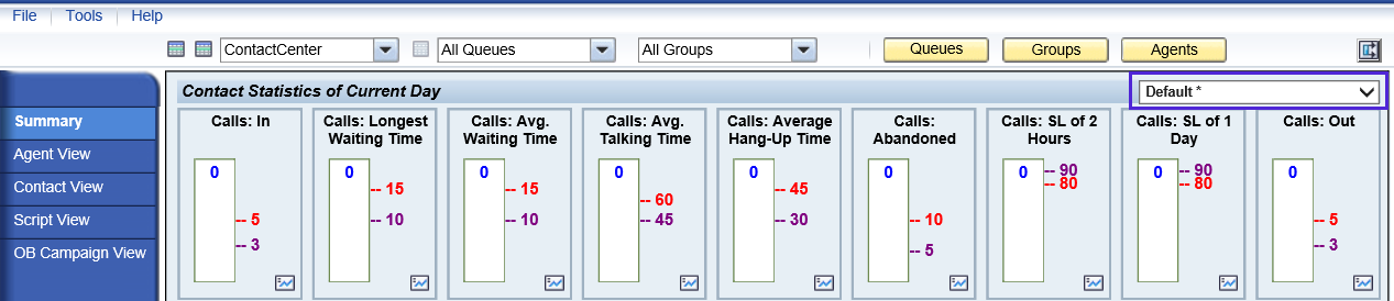 Max Number of Displayed Agents: Define the number of agents displayed in the Agents Active Contacts view. Administrators define the maximum for this setting in System Configurator (Reporting > Statistics Settings > Monitoring Settings).