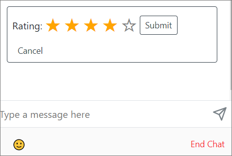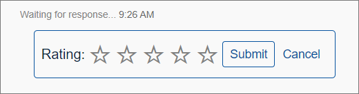 Interactive templates are rich content messages that can be inserted into a chat by agents. Customers see the interactive content in a simplified form such as buttons or stars. Customer then provides their response by clicking the interactive content. This template type is only for web chats.