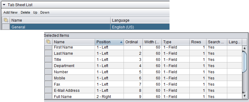 In the Tab Sheet block, choose the directory fields that you