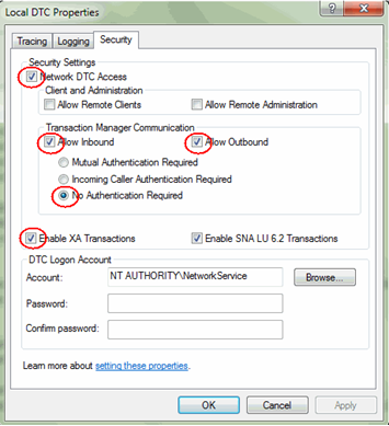 Right-click My Computer, choose Distributed Transaction Coordinator, right-click Local DTC and choose .