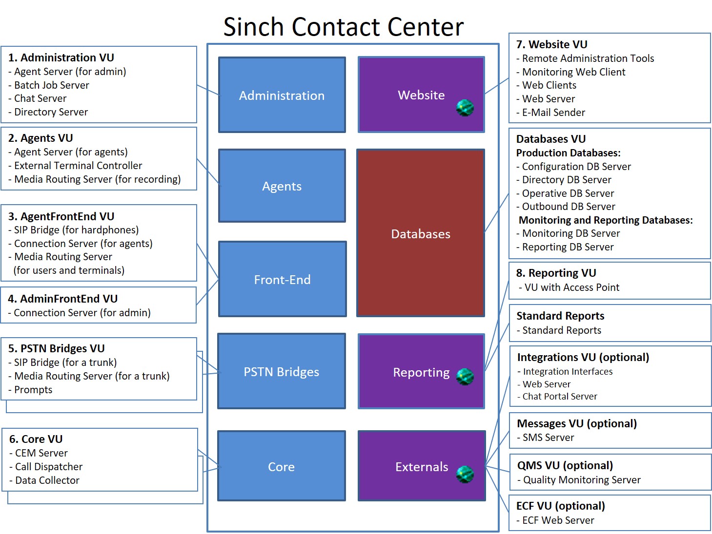 Applies to versions before 1608: Do not place Terminal Server in the same VU as Agent Server, and ECF Web Server in the same VU as Web Server. For more information about ECF installation, see Embedded Communications Framework (ECF).