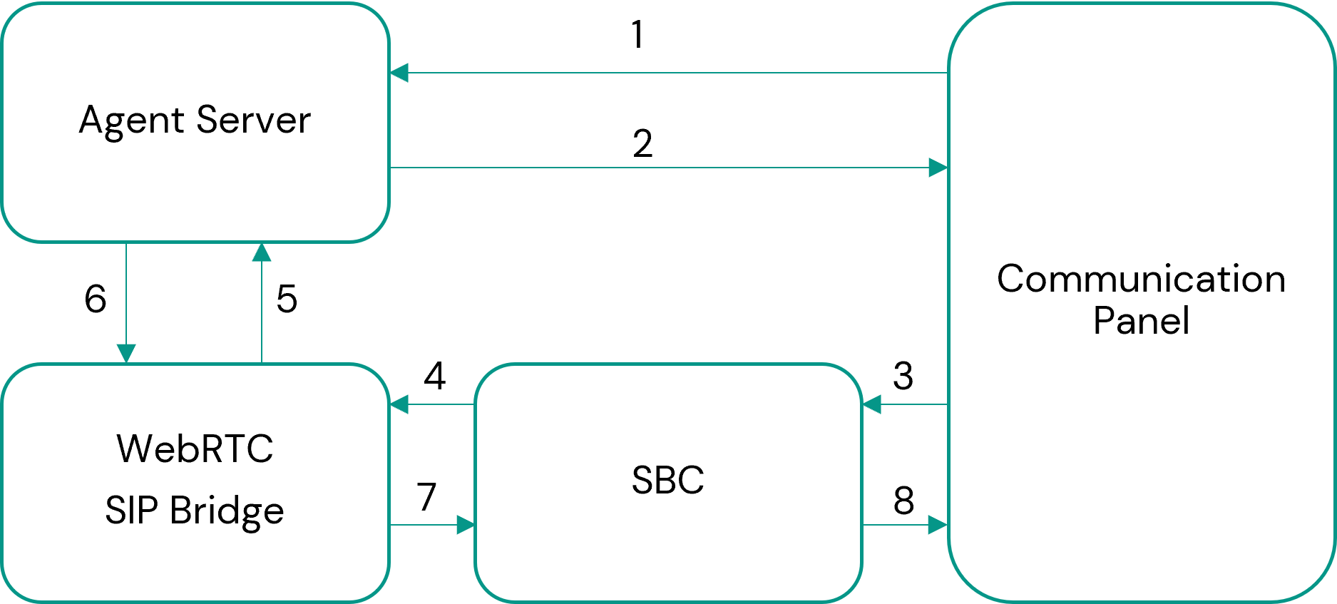 Sinch Contact Pro needs an external SBC system to translate incoming Communication Panel traffic from WebRTC to SIP. For handling that SIP traffic, Sinch Contact Pro needs a dedicated SIP Bridge module.