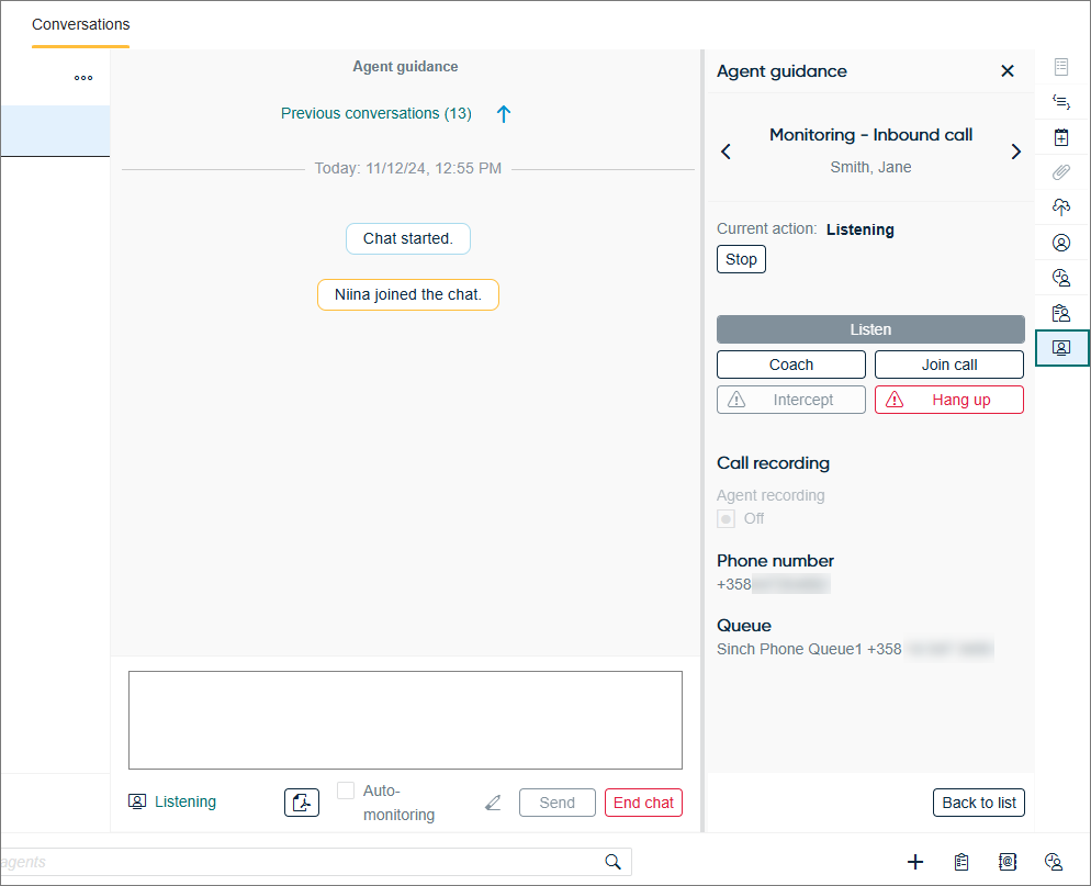 If the conversation is a phone call, open the Agent guidance extension to see options: