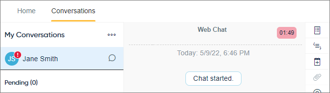 When 75% of the defined handling time limit has passed, the conversation timer changes from grey to orange. An orange exclamation point also appears in the Conversations list: