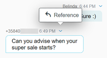 During a chat conversation you can use the Reference action to comment on a particular customer chat entry.
