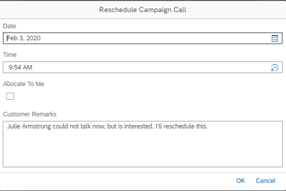 When you cannot reach the customer, or they answer that they cannot talk right now, you can
