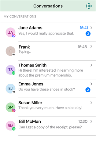 If the customer has sent messages you haven't seen yet, you'll see the number of unread messages in blue. You'll also see the number of unread messages from all your ongoing conversations: