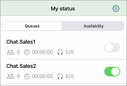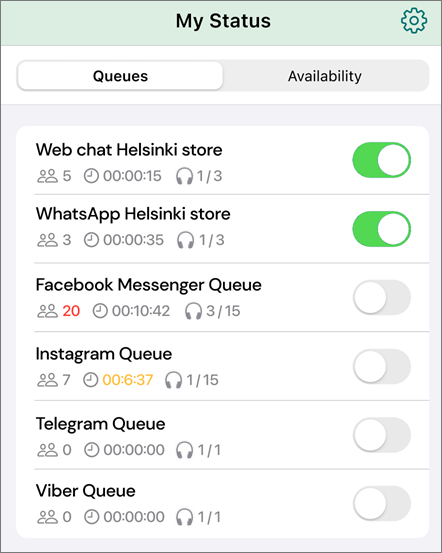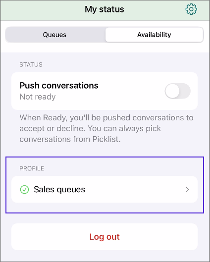 As conversations arrive to queues, you'll need to select the queue(s) you want to serve in, from My status.